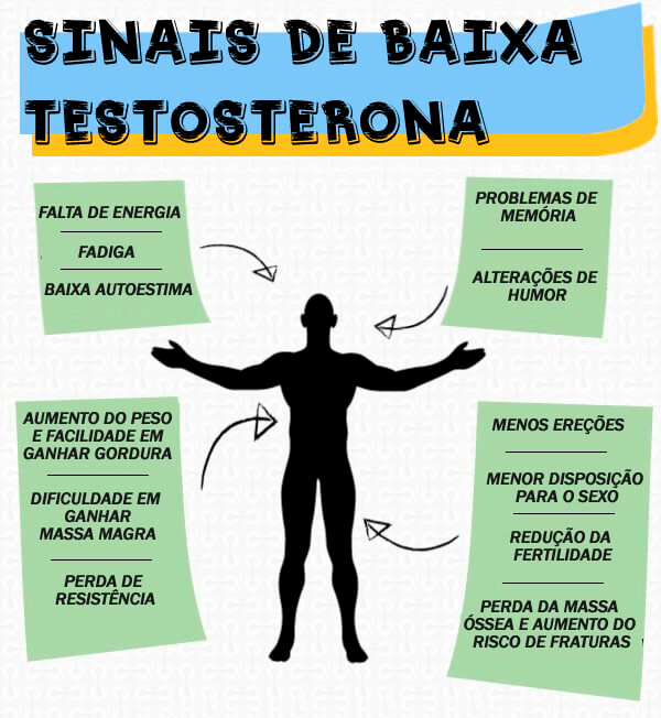 Para Eles: a diminuição da produção de testosterona pode levar aos seguinte sintomas: